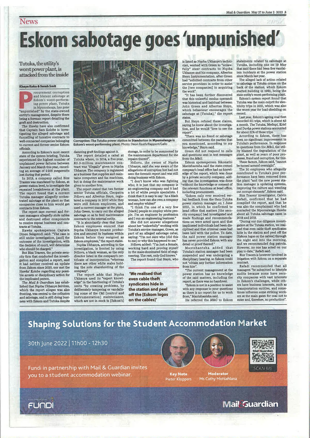 No action from Eskom on report of sabotage and corruption at its worst-performing power plant...